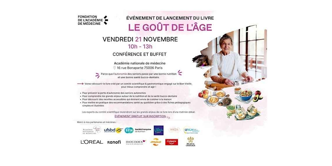 À l'occasion de la 6e édition de la Semaine de la dénutrition, la Fondation de l'Académie de Médecine dévoilera le 21 novembre (10-13h) un livre illustré, « Le Goût de l'âge », consacré à l'alimentation et à la santé bucco-dentaire des personnes âgées vivant à domicile ou en établissement.